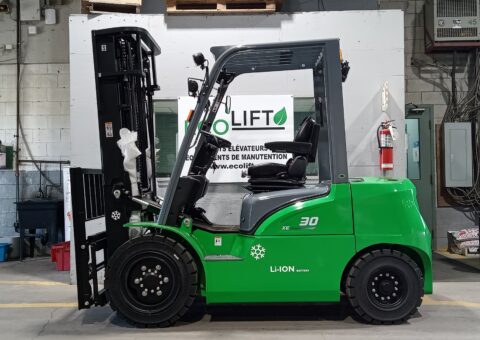 Les nouveaux chariots élévateurs électrique avec batteries au Lithium ECOLIFT constituent la plus importante innovation de l'industrie. Ils bénéficient d'une durée d'utilisation de la batterie grandement supérieure et d'un temps de recharge très rapide. Les différents modèles offerts sont disponibles avec les bloc-batteries 80V et haute puissance 309V.